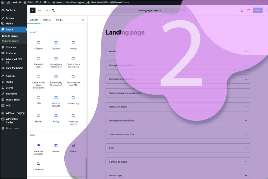 Usa i blocchi grafici pronti all’uso (hero, CTA, form, gallery, FAQ, ecc.)